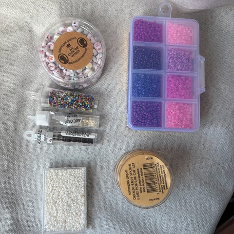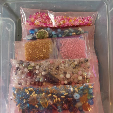 Krystall Perler og smykkedeler i plastboks