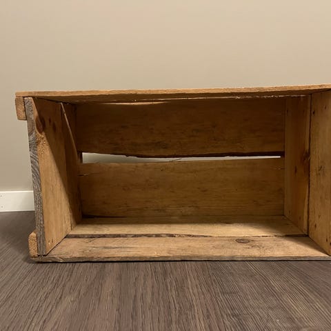 Selger fire eplekasser fra Jem og Fix. Brukt til oppbevaring av bøker og brettspill.