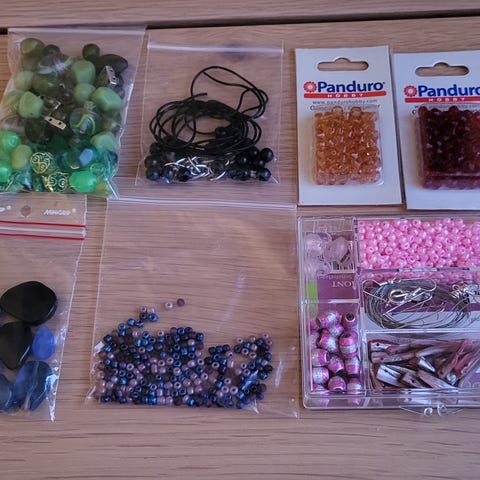 Perler og smykkedeler i plastboks. Inneholder ulike typer perler i flere farger og fasonger, blant annet runde og dråpeformede perler. Leveres i en gjennomsiktig plastboks med flere rom for sortering og oppbevaring. Egnet til hobbybruk som smykkelaging, dekorasjon og andre kreative prosjekter.