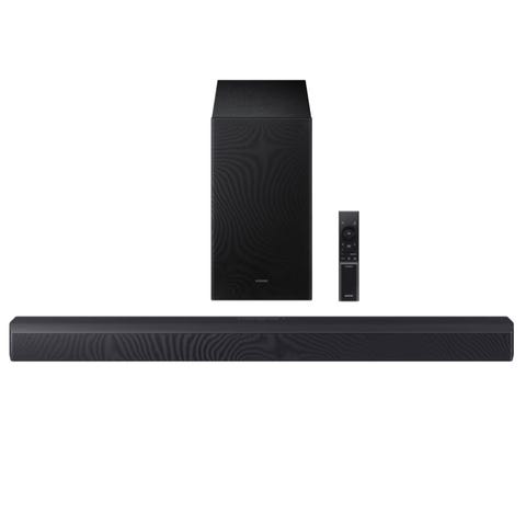 Samsung HW-Q800T lydplanke med tilhørende subwoofer i svart.