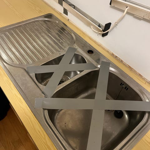Kjøkkenvask med 2 kummer, blandebatteri og benkeplate selges. 2 m lang.