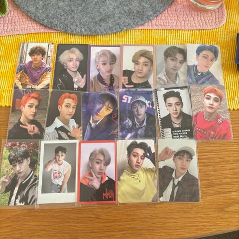 Selger photocards av Hyunjin fra Stray Kids. Alle er offisielle, i veldig god stand og kommer med sleeves. Send melding ved interesse og for pris.