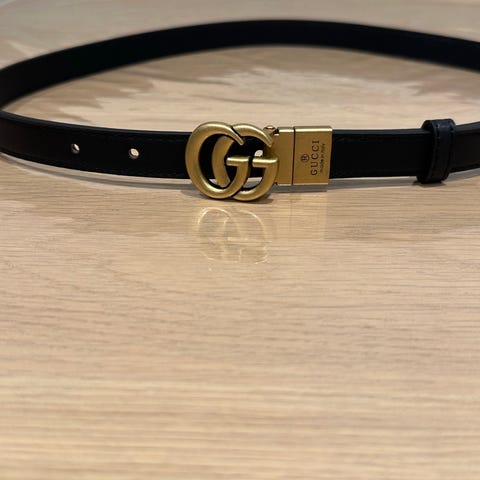 đď¸ Strøkent Gucci Marmont Skinnbelte (90cm) â Komplett med eske og pose