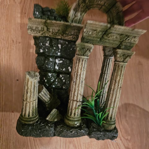 3 plater til akvarium med 3d utførelse, slik at akvariet kan se mer naturlig ut med klippebakgrunn. De er tatt ut av esken, men ikke brukt. Planen var å bruke dem som bakgrunn i terrarium, men det skjedde ikke.