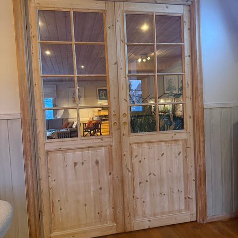 Ny furu innerdør. Dørblad ca 83x185 cm.