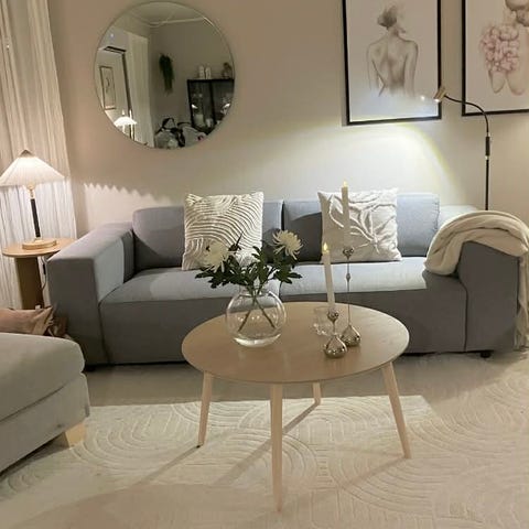 Selger en fin, snerten og behagelig sofa i fargen lys grå. Stoffet er litt grovt melert og veldig holdbart.
