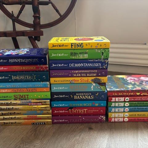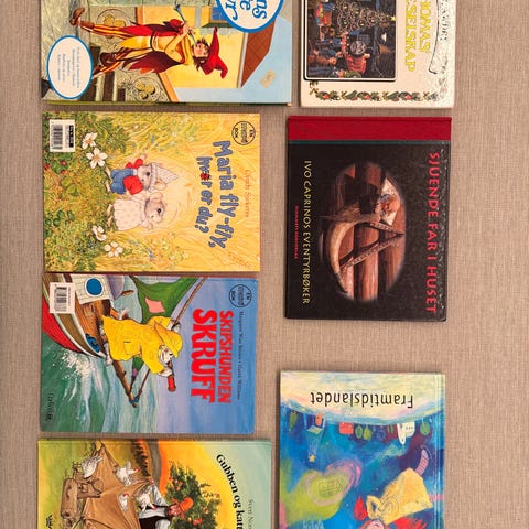 Pakke med diverse barnebøker for småbarn og barn i tidlig lesealder. Bøkene inkluderer blant annet lettleste bøker og bildebøker med illustrasjoner. Innholdet spenner fra hverdagsfortellinger til spenningshistorier og humor. Egner seg for høytlesning for yngre barn og for barn som øver på å lese selv. Flere av bøkene er i serieformat, med korte kapitler og tydelig tekst kombinert med fargerike illustrasjoner. Hentes Hundvåg/fiks ferdig.