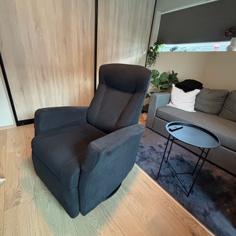 Recliner stoler med justerbar nakkepute og uttagbar fotskammel
