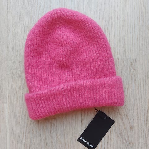 Damemodell i myk og lett mohairullblanding, størrelse one size. Luen har brett med tydelig Samsøe-logo foran. Mohair er kjent for sine isolerende egenskaper og gir god varme. Anbefalt håndvask med spesialmiddel for ull ifølge vaskeanvisningen.