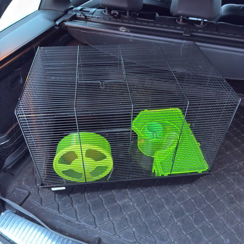 Smådyrbur med løpehjul, rør og tilbehør plast gjennomsiktig