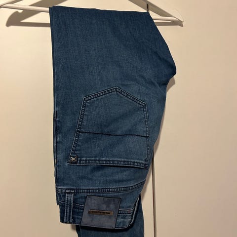 Jacob Cohën jeans for herre i lys blå farge. Buksen er ikke brukt, kun prøvd på ett par ganger. Buksen er ikke lagt opp og er i lengde 34.