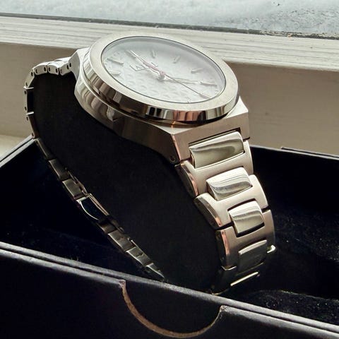 Det er i tillegg med en ekstra rem i skinn, som gir klokken en mer klassisk og retro "look"