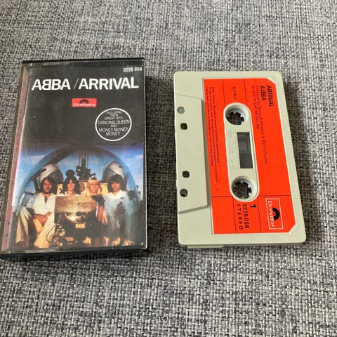 ABBA kassettbånd samling med flere album og samleutgivelser. Bildene viser blant annet «The Visitors» og ulike «Greatest Hits»-utgaver på kassett. Kassettene leveres i originale plastomslag med trykte cover. Egnet for avspilling på kassettspiller og som samlerobjekt for musikkinteresserte som ønsker fysiske utgivelser fra ABBA på analogt format.