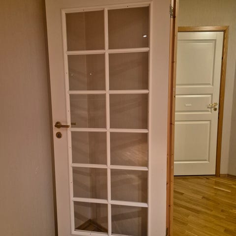 Glass dør med ruter - 80x200m høyre hengslet. 1999,-