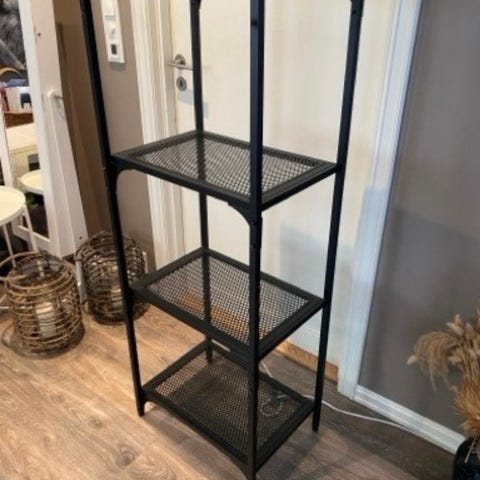 Reolen har også små svarte, justerbare føtter, slik at den står stødig selv på ujevne gulv.