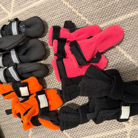 Søte potesokker og sko i xs til liten hund. De orange har ikke blitt brukt.