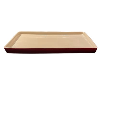 Stekeformen er 45,5 cm lang, 33 cm dyp og 3 cm høy. Den har stålgalvaniserte kanter, slik at den holder formen selv ved høy varmee