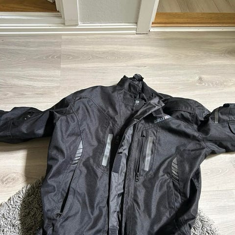 Bullfighter motorsykkelsett bestående av jakke og bukse i svart. Avtagbart innerfor følger med.Størrelse L. Lite og pent brukt.