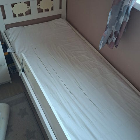 IKEA juniorseng trehvit og hvit.