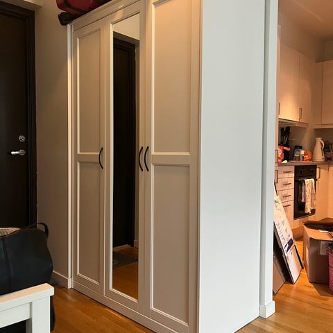 Åpen garderobeløsning i tre – H203 x B111,5 x D55 cm + ca. 12 kleshengere