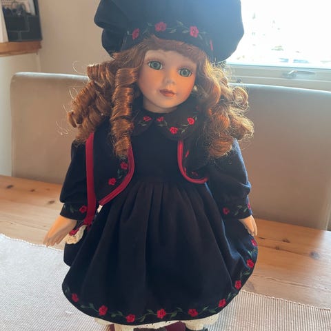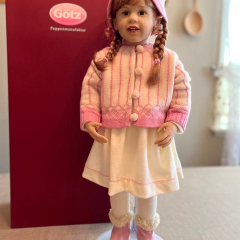 Götz dukke som heter Lena og er 68 cm. Leveres med original eske fra Götz som bakgrunn på bildet.