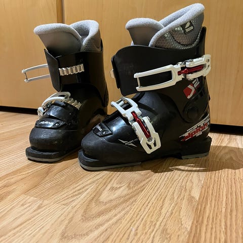Støvlene har justerbar spenne over vristen og rundt ankelen for å gi god støtte. Myk, polstret innersko i mørk tekstil gir komfort og varme. Sålen har kraftig gummimønster for godt feste ved gange. Passer til alpinski for barn. Størrelse fremgår av sålen på støvelen på bildet og bør kontrolleres ved kjøp.