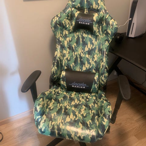 Dg gamingstol. Kjøpt på power for et par år siden. Pent brukt. Ingen synlig slitasje. På bildet er den bare fuktig på setet etter vask.