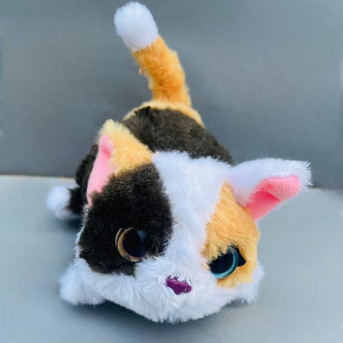 Denne super søte, kosete, vennlige & ikke minst fluffy interaktive kattunge går framover, logrer med halen & mjauer.