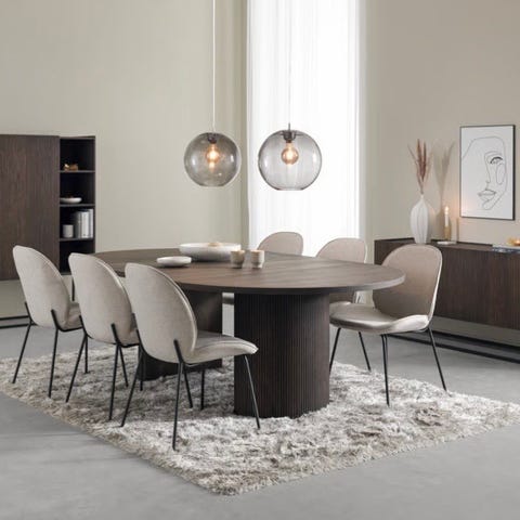 Camaro spisestol med tekstil Brego i mørk beige og sortlakkerte ben er et moderne og elegant valg for enhver spisestue. Brego-stoffet i mørk beige gir et varmt og eksklusivt uttrykk samtidig som det tilbyr en myk og behagelig sittekomfort. De sortlakkerte bena skaper en flott kontrast og gir stolen et moderne og sofistikert utseende som passer til ulike interiørstiler. Perfekt for både klassiske og moderne spiseområder, kombineres Camaro spisestol enkelt med ulike spisebord og dekorasjoner. Med materialer av høy kvalitet og førsteklasses håndverk sikrer denne spisestolen langvarig holdbarhet, komfort og et tidløst design til hjemmet ditt.