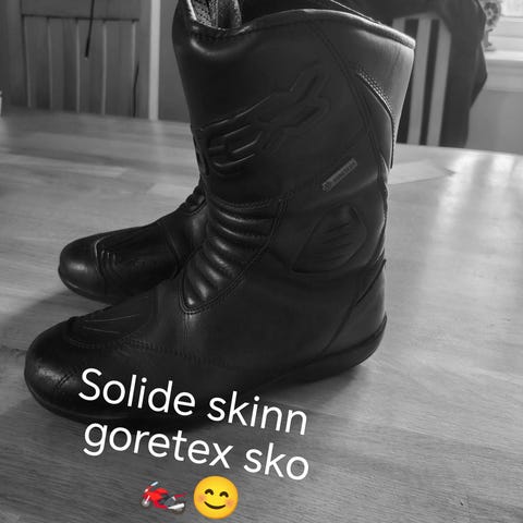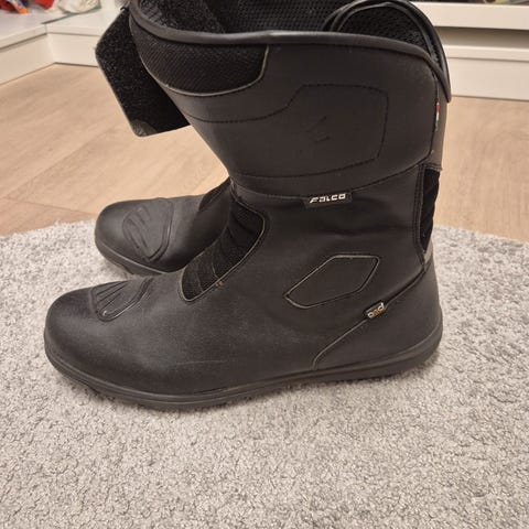 TCX MC-støvler med Gore-Tex-membran i svart farge. Støvlene har høy skaftkonstruksjon med forsterkninger og mønstret yttersåle fra TCX for godt grep. Egnet som motorsykkelstøvler til bruk på vei, med fokus på værbeskyttelse og komfort ved kjøring.