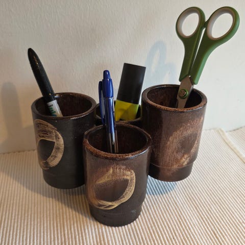 Materiale: keramikk/stein gods. Farge: mørk brun med nyanser.