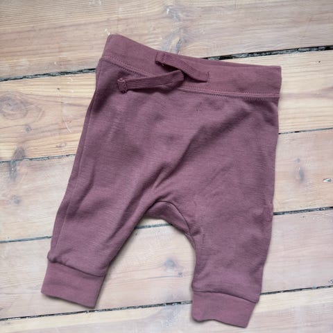 Hust & Claire babybukse i ull, størrelse 62. Bukser i myk ullkvalitet med strikk og knyting i livet samt ribb nederst på bena.