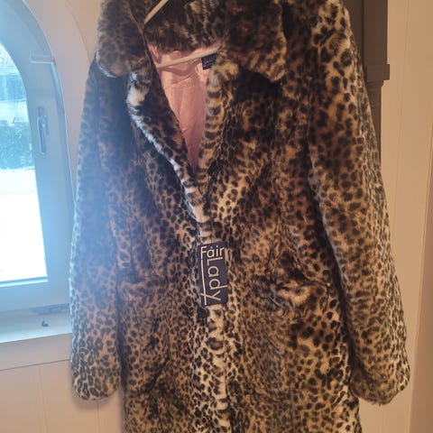Nydelig fuskepels kåpe- svart men med noe innslag av brun ettersom lyset flaller på den. .selges da den er for stor til den som den var tiltenkt. Utrolig behagelig kåpe på.