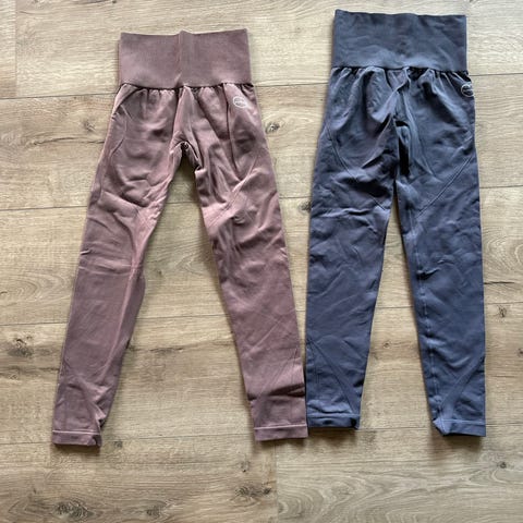 ICANIWILL treningstights i størrelse S for dame. Tightsene kommer i to farger: rød og mørk blå med mønster. Elastisk materiale som sitter tett på kroppen og egner seg til ulike typer trening og fritidsbruk. Strikk i livet for bedre passform. Selges samlet.