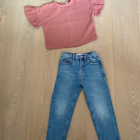 Zara, Name it, H&M og andre barneklær for jente i størrelse 100-110.Pakken inneholder ulike plagg i flere farger, blant annet overdeler, underdeler og kjole/tunika. Klærne passer til hverdagsbruk for barn rundt størrelse 100-110. Flerfargede mønstre og ulike snitt gir variasjon i garderoben. Materiale er typiske tekstiler for barneklær, egnet til bruk i barnehage og fritid.
