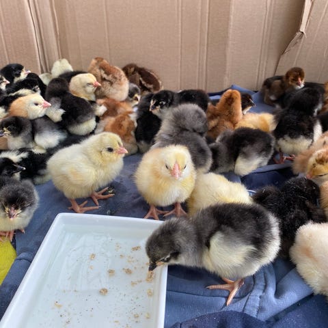 Flotte og friske miks-kyllinger selges. Disse er en spennende blanding av svart kobberhalset Marans, Australorp og Crested Cream Legbar. Høner fra denne blandingen forventes å legge egg i nyanser fra mørk brun til mørk grønn.
