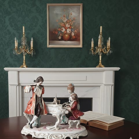 Tilstand: Kandelaberen er i perfekt stand. Den har ingen skader, hakk, eller reparasjoner på hverken de skjøre blomstene eller figurene.