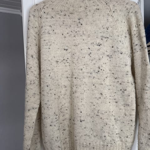 Hjemmestrikket genser i herlig lyslilla farge. Helt feilfri! S-M, avhengig av hvor stor du vil ha den.