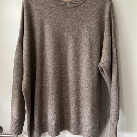 Days Like This genser for dame i størrelse L. Genseren er beige og laget i mohairullblanding. Den har rund hals, lange ermer og ribbestrikkede kanter nederst og på ermene.