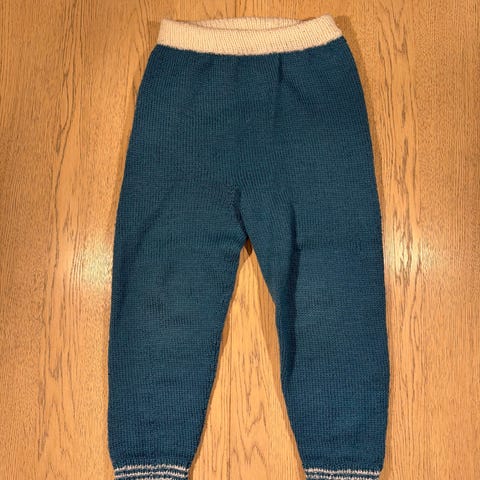 Hjemmestrikket ullbukse str. 6–8 år – varm og elastisk