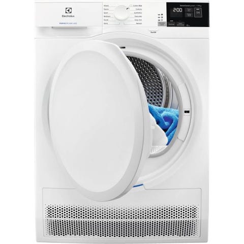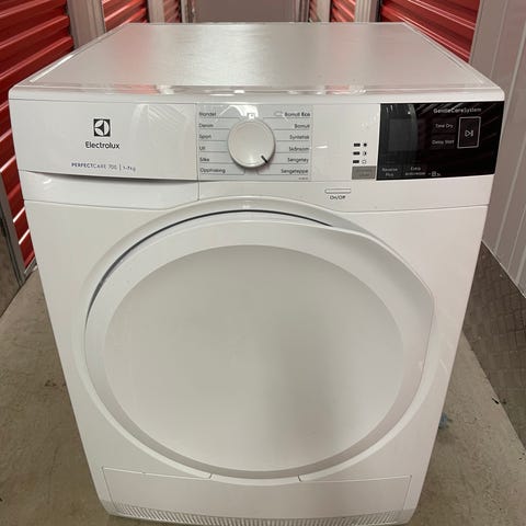 Electrolux kondenstørketrommel i hvit utførelse. Frontmatet modell med rund dør og elektronisk betjening på oversiden. Egnet for tørking av vanlig tøy i husholdning. Kondensteknologi samler opp fuktigheten i en beholder eller ledes ut via avløp, avhengig av installasjon. Passer i vaskerom eller bad der det ikke er mulig å lufte direkte ut gjennom vegg eller vindu.