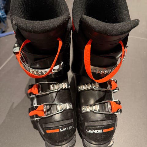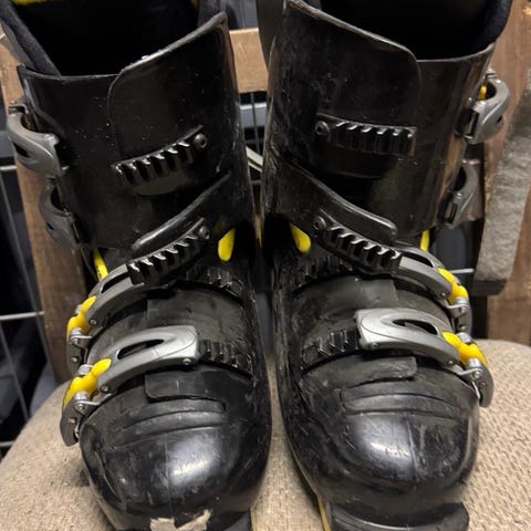 Lange alpinstøvler i blå plast med fire metallspenner og powerstrap øverst. Støvlene har justerbare spenner over fot og legg for bedre passform. Passer til vanlig alpinbinding. Egner seg til bruk i alpinbakke for skikjøring på preparerte løyper.