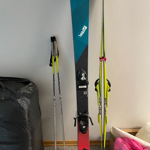 Lange skistøvler i svart farge. Modellen har tre spenner foran med justeringsmulighet. Sålen er merket med størrelseområdet 175–185 mm, str 18,5.