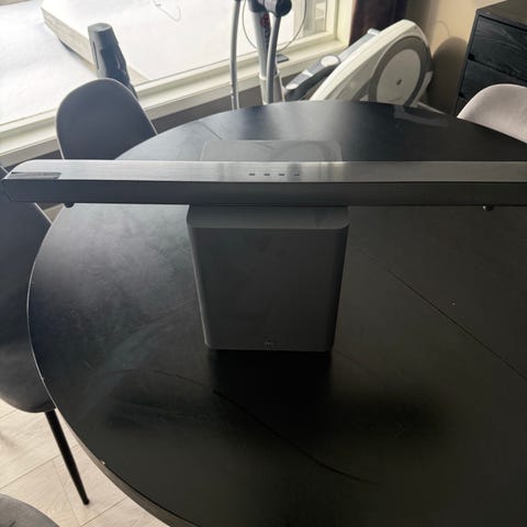 Selger en JVC lydplanke med tilhørende subwoofer. Sub snakker trådløst med lydplanke. Den skal bare ha strøm.