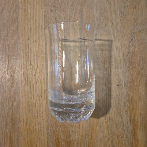 Glassvase i klart glass med teksten "Den Norske Opera" inngravert.