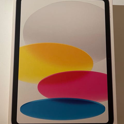 Apple iPad 11 nettbrett med 128 GB lagringsplass. Nettbrettet egner seg til bruk som arbeidsverktøy, underholdning, nettlesing og apper. Bildene viser nettbrettet med skjerm, bakside og original emballasje. Det følger også med en Apple Pencil som kan brukes til tegning, notater og presis navigering på skjermen, samt ladekabel som vist på bildene.