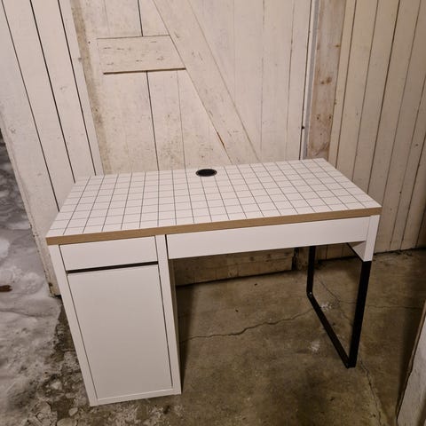 Praktisk pult med 1 stor og 1 liten skuff - hyller på venstre side.med dør. Passer feks. fint på et barnerom eller til hjemmekontor arbeidsplass