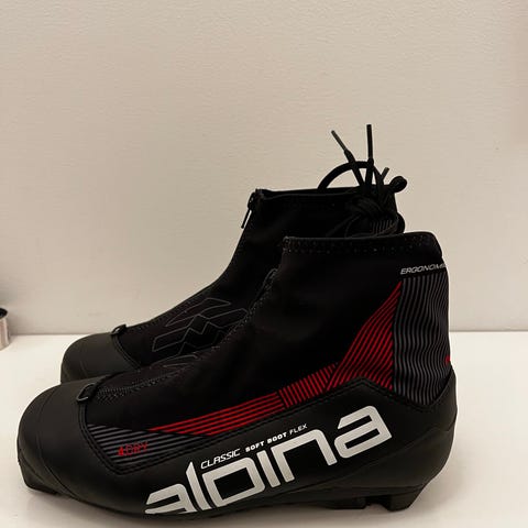 Alpina langrennsstøvler i sølvfarge. Veldig fine og pent brukt.