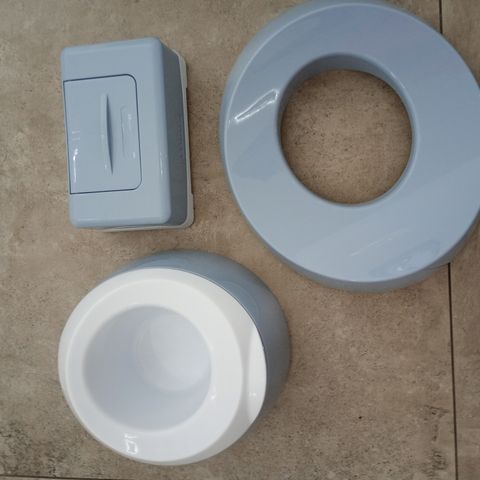 - BabyDan potte med "spyleknapp" som lager lyd. Følger med batterier.