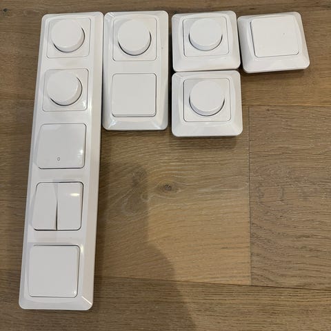 Produktet består av dimmerinnsats for innfelt montering, hvit ramme og hvit dreieknapp. Tilkoblingsklemmer for fase og nøytral er tilgjengelige på fronten av innsatsen. Dimmeren kan brukes i innendørs installasjoner der det er behov for trinnløs regulering av lysnivå.